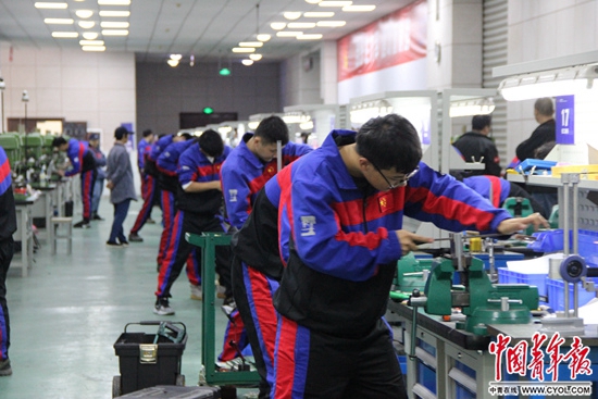從早上8點(diǎn)到晚上8點(diǎn)甚至更晚,都在和鉗工專業(yè)知識較勁,這是孫延飛每天的學(xué)習(xí)訓(xùn)練狀態(tài)。很累,但他喜歡這種有技術(shù)的挑戰(zhàn)。