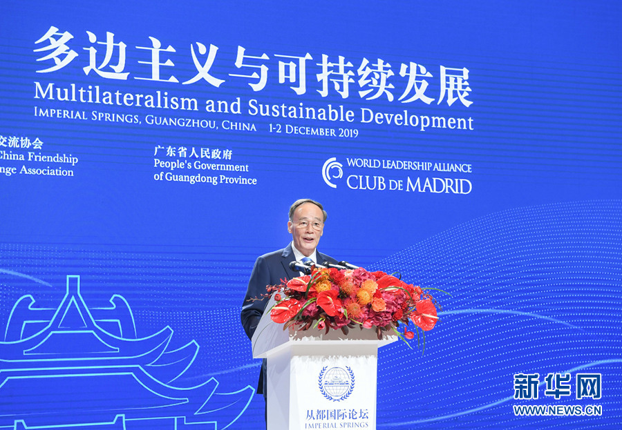 12月1日,國(guó)家副主席王岐山在廣州出席“2019從都國(guó)際論壇”開(kāi)幕式并致辭。 新華社記者 申宏 攝