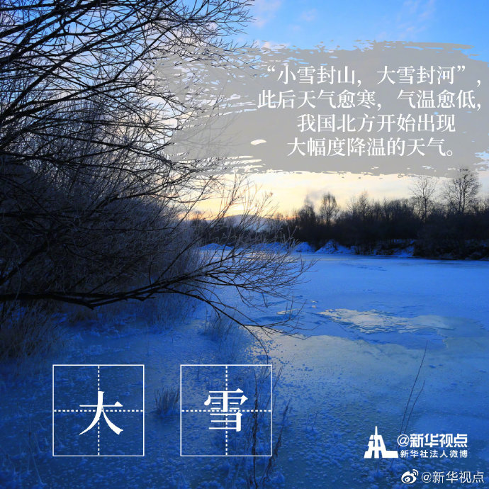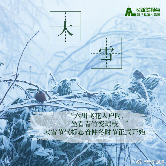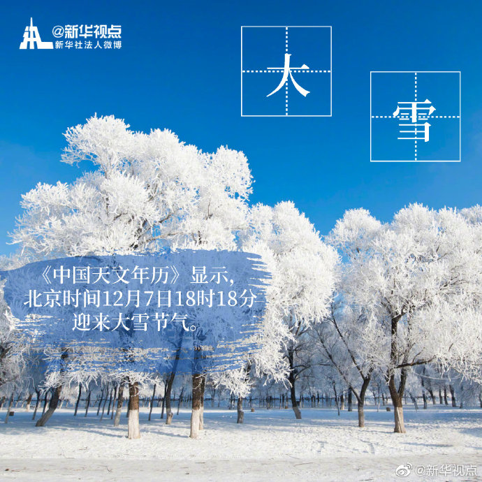“白雪紛紛何所似?未若柳絮因風(fēng)起?!苯裉?8時(shí)18分迎來“大雪”節(jié)氣。相較于“小雪”節(jié)氣,“大雪”節(jié)氣時(shí),氣溫不斷下降,雪量不斷增大,下雪天數(shù)不斷增加。天氣漸冷,注意添衣保暖。?