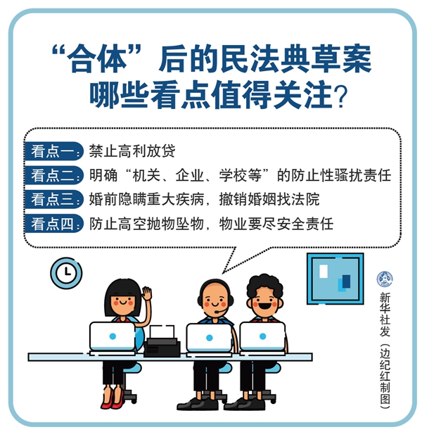 從明確禁止高利放貸、進(jìn)一步完善防止性騷擾有關(guān)規(guī)定,到合理確定無效婚姻的情形、完善高空拋物墜物責(zé)任規(guī)則,民法典草案的諸多新看點(diǎn)值得關(guān)注。