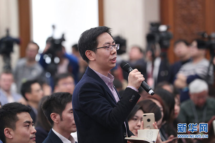 全國(guó)政協(xié)十三屆二次會(huì)議新聞發(fā)布會(huì)于3月2日15:00在人民大會(huì)堂一層新聞發(fā)布廳召開,大會(huì)新聞發(fā)言人郭衛(wèi)民向中外媒體介紹本次大會(huì)有關(guān)情況并回答記者提問。圖為人民日?qǐng)?bào)社記者提問。新華網(wǎng)/中國(guó)政府網(wǎng) 翟子赫 攝