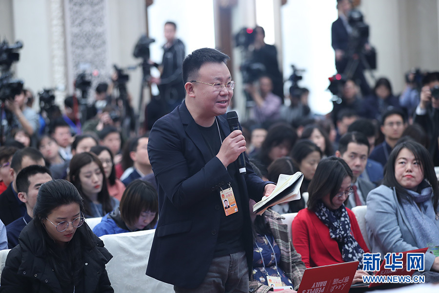 十三屆全國人大二次會(huì)議3月4日上午11時(shí)15分在人民大會(huì)堂新聞發(fā)布廳舉行新聞發(fā)布會(huì),由大會(huì)發(fā)言人就大會(huì)議程和人大工作相關(guān)的問題回答中外記者提問。圖為封面新聞?dòng)浾咛釂?。新華網(wǎng)/中國政府網(wǎng) 陳杰 攝