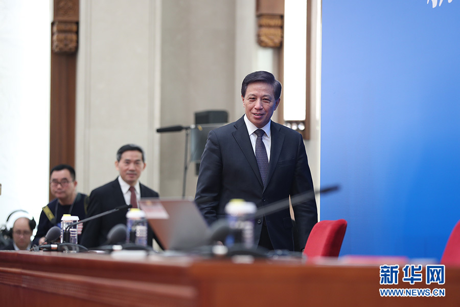 十三屆全國人大二次會議3月4日上午11時15分在人民大會堂新聞發(fā)布廳舉行新聞發(fā)布會,由大會發(fā)言人張業(yè)遂就大會議程和人大工作相關(guān)的問題回答中外記者提問。圖為張業(yè)遂步入會場。新華網(wǎng)/中國政府網(wǎng) 翟子赫 攝