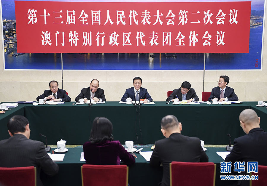 韓正分別參加了香港代表團、澳門代表團審議。韓正與香港、澳門地區(qū)全國人大代表進行了親切交流。在充分肯定港澳發(fā)展取得的成績后,韓正指出,粵港澳大灣區(qū)建設(shè)的一個重要戰(zhàn)略考量,是推進“一國兩制”事業(yè)發(fā)展,保持香港、澳門長期繁榮穩(wěn)定。香港、澳門要發(fā)揮獨特優(yōu)勢,積極參與粵港澳大灣區(qū)建設(shè),在融入國家發(fā)展大局中實現(xiàn)自身更好發(fā)展。港澳地區(qū)全國人大代表是愛國愛港、愛國愛澳的中堅力量,要進一步發(fā)揮好雙重積極作用,為“一國兩制”事業(yè)作出新的貢獻。在香港代表團,韓正表示,香港在大灣區(qū)建設(shè)中作用特殊,將支持香港打造國際創(chuàng)新科技中心,鼓勵香港同胞特別是青年在大灣區(qū)創(chuàng)業(yè)就業(yè),更好發(fā)揮香港專業(yè)服務(wù)在大灣區(qū)建設(shè)中的作用。希望香港地區(qū)全國人大代表帶頭維護“一國兩制”和憲法基本法權(quán)威,帶頭支持行政長官和特區(qū)政府依法施政,帶頭促進香港社會在愛國愛港旗幟下的大團結(jié),帶頭參與香港與內(nèi)地的交流合作。在澳門代表團,韓正表示,大灣區(qū)建設(shè)給澳門帶來了新機遇,將支持澳門拓展發(fā)展新空間,建設(shè)“一個中心”“一個平臺”,加快發(fā)展旅游、會展等產(chǎn)業(yè),做好保障和改善民生工作,讓澳門居民在大灣區(qū)建設(shè)中得到更多實惠。希望澳門地區(qū)全國人大代表積極參與慶祝澳門回歸祖國20周年有關(guān)活動,積極支持特區(qū)政府換屆交接,積極推動經(jīng)濟適度多元發(fā)展,積極關(guān)心幫助青年成長發(fā)展。