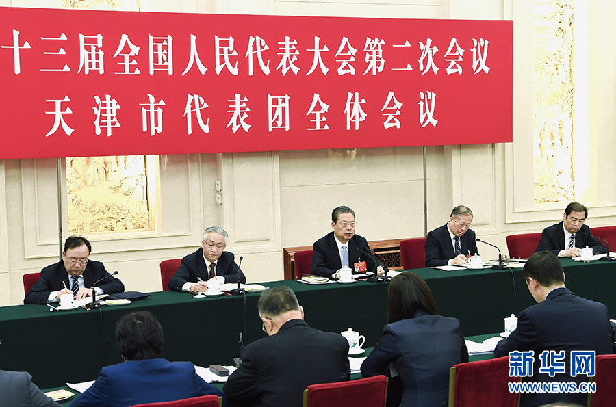 趙樂(lè)際在天津代表團(tuán)參加審議。楊茂榮、楊寶玲、李響等代表先后發(fā)言。趙樂(lè)際充分肯定天津工作取得的新成績(jī),希望天津深入學(xué)習(xí)貫徹習(xí)近平新時(shí)代中國(guó)特色社會(huì)主義思想,認(rèn)真落實(shí)習(xí)近平總書(shū)記關(guān)于京津冀協(xié)同發(fā)展和視察天津時(shí)的重要指示,抓住戰(zhàn)略機(jī)遇期,提高自主創(chuàng)新能力,大力發(fā)展實(shí)體經(jīng)濟(jì),保障和改善民生,加快建設(shè)“五個(gè)現(xiàn)代化天津”,以實(shí)際行動(dòng)踐行“兩個(gè)維護(hù)”,以實(shí)際成效增強(qiáng)人民群眾獲得感幸福感安全感。趙樂(lè)際強(qiáng)調(diào),統(tǒng)籌推進(jìn)“五位一體”總體布局、協(xié)調(diào)推進(jìn)“四個(gè)全面”戰(zhàn)略布局,全面從嚴(yán)治黨是重要戰(zhàn)略任務(wù)、也是重要政治保證。要持之以恒正風(fēng)反腐、標(biāo)本兼治,一體推進(jìn)不敢腐、不能腐、不想腐,不斷把全面從嚴(yán)治黨引向深入。