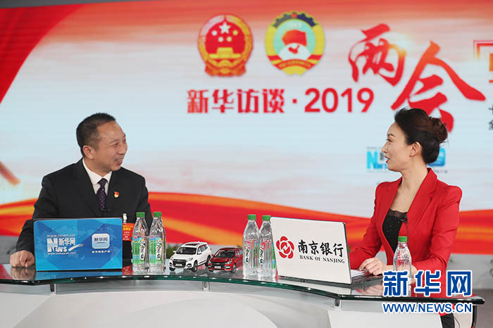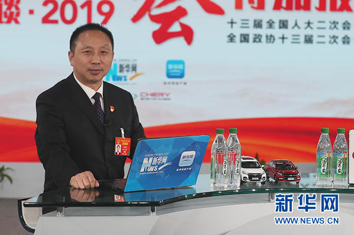 全國(guó)人大代表、東風(fēng)商用車有限公司車輛工廠調(diào)檢一車間“王濤班”班長(zhǎng)王建清做客新華網(wǎng)2019全國(guó)兩會(huì)特別報(bào)道。新華網(wǎng)?郭小天 攝