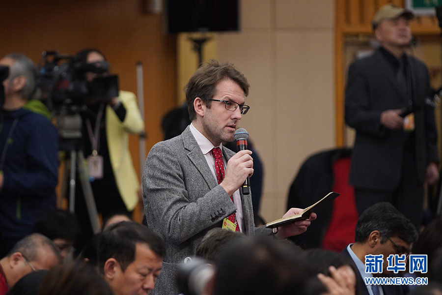 ????十三屆全國人大二次會(huì)議新聞中心3月7日9時(shí)在梅地亞中心新聞發(fā)布廳舉行記者會(huì),邀請(qǐng)財(cái)政部部長劉昆,副部長程麗華、劉偉就“財(cái)稅改革和財(cái)政工作”相關(guān)問題回答中外記者提問。圖為彭博新聞社記者提問。新華網(wǎng)/中國政府網(wǎng) 劉廈 攝