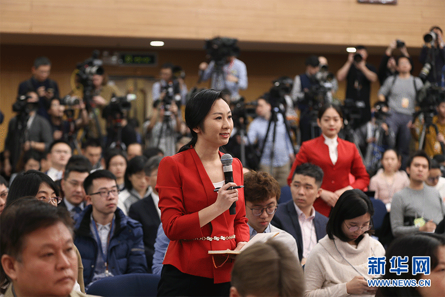 十三屆全國人大二次會議新聞中心3月9日(星期六)10時30分在梅地亞中心新聞發(fā)布廳舉行記者會,邀請商務(wù)部部長鐘山、副部長兼國際貿(mào)易談判副代表王受文、副部長錢克明就“促進(jìn)形成強(qiáng)大國內(nèi)市場 推動全方位對外開放”相關(guān)問題回答中外記者提問。圖為中國國際電視臺CGTN記者提問。新華網(wǎng)/中國政府網(wǎng) 劉廈?攝