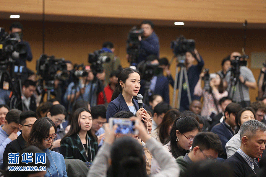 十三屆全國(guó)人大二次會(huì)議新聞中心3月9日(星期六)10時(shí)30分在梅地亞中心新聞發(fā)布廳舉行記者會(huì),邀請(qǐng)商務(wù)部部長(zhǎng)鐘山、副部長(zhǎng)兼國(guó)際貿(mào)易談判副代表王受文、副部長(zhǎng)錢克明就“促進(jìn)形成強(qiáng)大國(guó)內(nèi)市場(chǎng) 推動(dòng)全方位對(duì)外開放”相關(guān)問(wèn)題回答中外記者提問(wèn)。圖為中央廣播電視總臺(tái)央視記者提問(wèn)。新華網(wǎng)/中國(guó)政府網(wǎng) 劉廈 攝