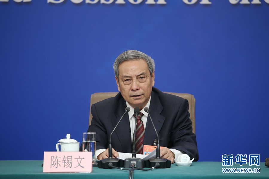 十三屆全國人大二次會議新聞中心3月9日在梅地亞中心新聞發(fā)布廳舉行記者會,邀請全國人大農(nóng)業(yè)與農(nóng)村委員會主任委員陳錫文、全國人大財政經(jīng)濟委員會副主任委員烏日圖、全國人大常委會法制工作委員會副主任劉俊臣、全國人大常委會法制工作委員會副主任許安標、全國人大環(huán)境與資源保護委員會委員程立峰就“人大立法工作”相關(guān)問題回答記者提問。圖為全國人大農(nóng)業(yè)與農(nóng)村委員會主任委員陳錫文。新華網(wǎng)/中國政府網(wǎng) 劉廈 攝