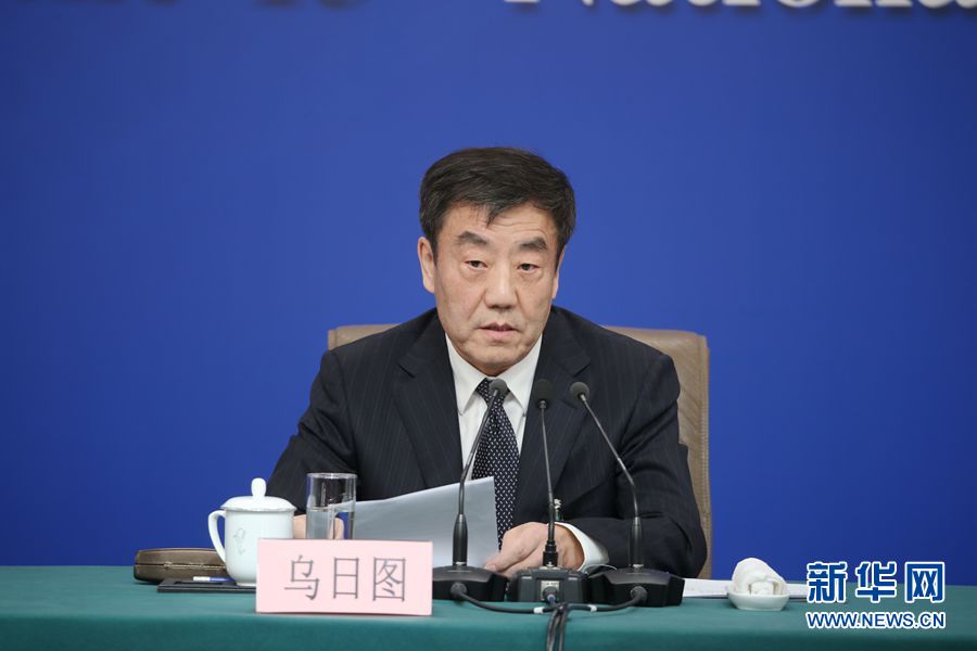 十三屆全國人大二次會(huì)議新聞中心3月9日在梅地亞中心新聞發(fā)布廳舉行記者會(huì),邀請全國人大農(nóng)業(yè)與農(nóng)村委員會(huì)主任委員陳錫文、全國人大財(cái)政經(jīng)濟(jì)委員會(huì)副主任委員烏日圖、全國人大常委會(huì)法制工作委員會(huì)副主任劉俊臣、全國人大常委會(huì)法制工作委員會(huì)副主任許安標(biāo)、全國人大環(huán)境與資源保護(hù)委員會(huì)委員程立峰就“人大立法工作”相關(guān)問題回答記者提問。圖為全國人大財(cái)政經(jīng)濟(jì)委員會(huì)副主任委員烏日圖。新華網(wǎng)/中國政府網(wǎng) 劉廈 攝