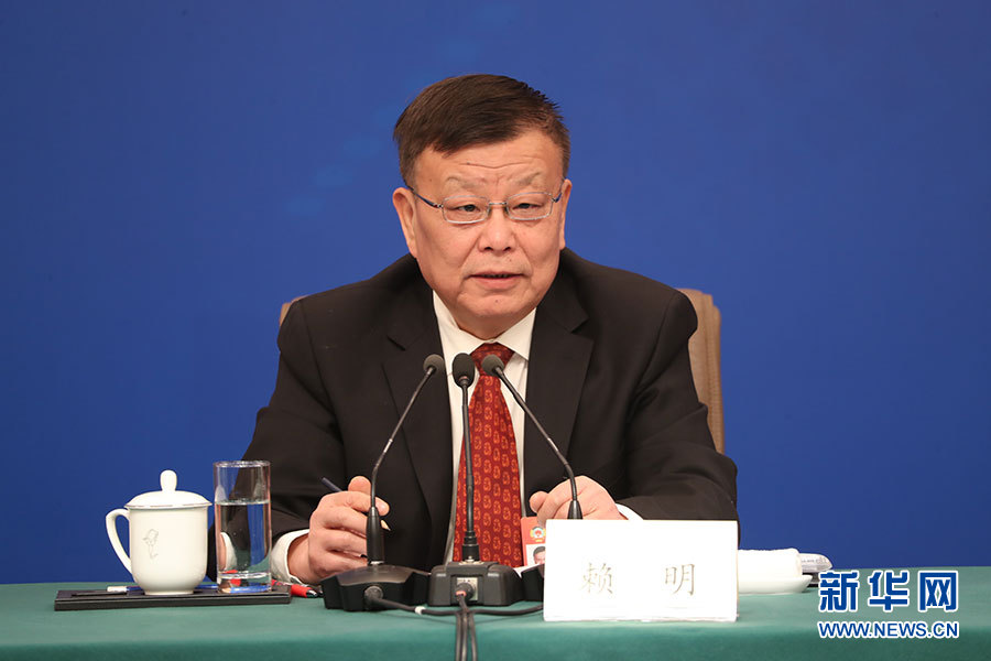 全國政協(xié)十三屆二次會議3月10日(星期日)上午8:45在梅地亞兩會新聞中心舉行記者會,邀請5位政協(xié)委員就“新時代政協(xié)履職”回答記者提問。新華網(wǎng)、中國政府網(wǎng)進行現(xiàn)場直播。圖為全國政協(xié)常委、副秘書長(兼)、提案委員會副主任,九三學(xué)社中央副主席賴明。新華網(wǎng)/中國政府網(wǎng) 陳杰攝