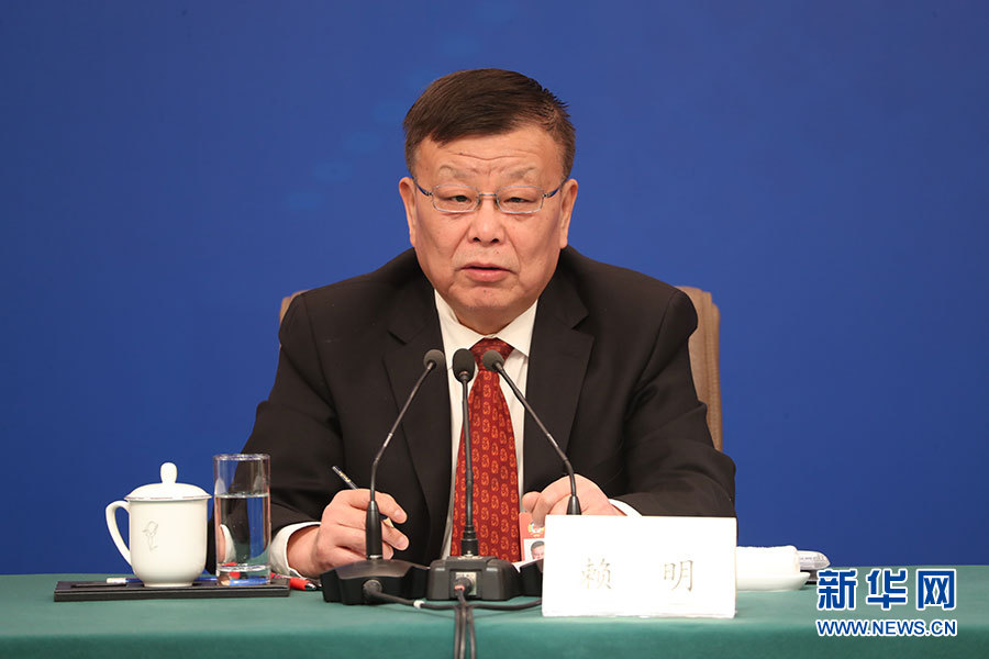 全國政協(xié)十三屆二次會議3月10日(星期日)上午8:45在梅地亞兩會新聞中心舉行記者會,邀請5位政協(xié)委員就“新時代政協(xié)履職”回答記者提問。新華網(wǎng)、中國政府網(wǎng)進(jìn)行現(xiàn)場直播。圖為全國政協(xié)常委、副秘書長(兼)、提案委員會副主任,九三學(xué)社中央副主席賴明。新華網(wǎng)/中國政府網(wǎng) 陳杰攝