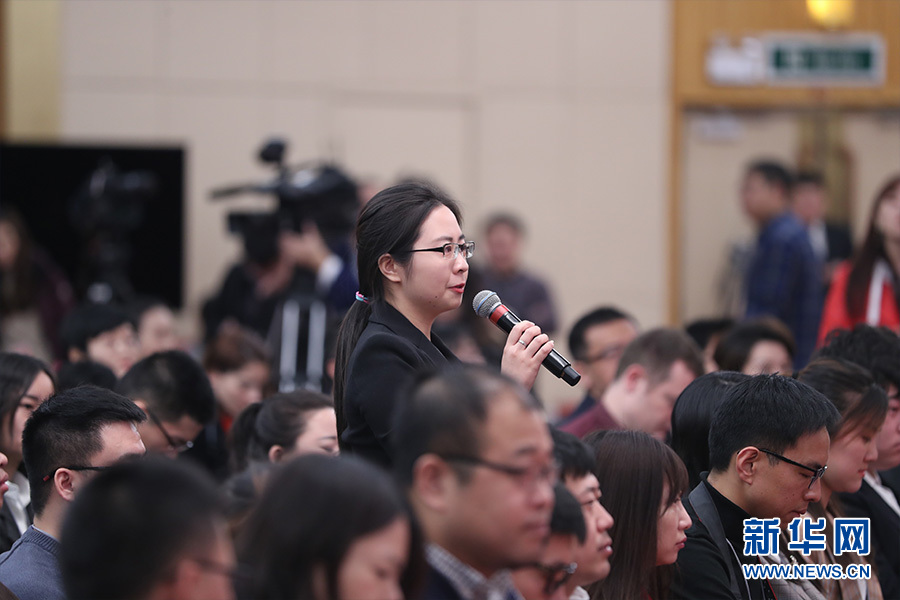十三屆全國人大二次會議新聞中心3月11日(星期一)8時45分在梅地亞中心新聞發(fā)布廳舉行記者會,邀請科技部部長王志剛、副部長李萌、戰(zhàn)略規(guī)劃司司長許倞、政策法規(guī)與創(chuàng)新體系建設司司長賀德方、資源配置與管理司司長張曉原就“加快建設創(chuàng)新型國家”相關問題回答中外記者提問。圖為人民日報社記者提問。新華網(wǎng)/中國政府網(wǎng) 劉廈 攝
