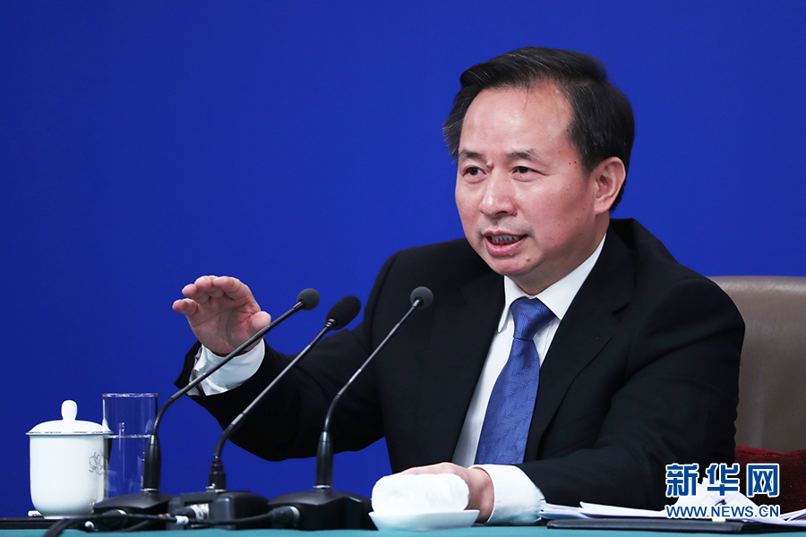 十三屆全國人大二次會議新聞中心于3月11日(星期一)15時在梅地亞中心新聞發(fā)布廳舉行記者會,邀請生態(tài)環(huán)境部部長李干杰就“打好污染防治攻堅戰(zhàn)”相關問題回答中外記者提問。圖為李干杰回答記者提問。新華網(wǎng)/中國政府網(wǎng) 劉廈 攝