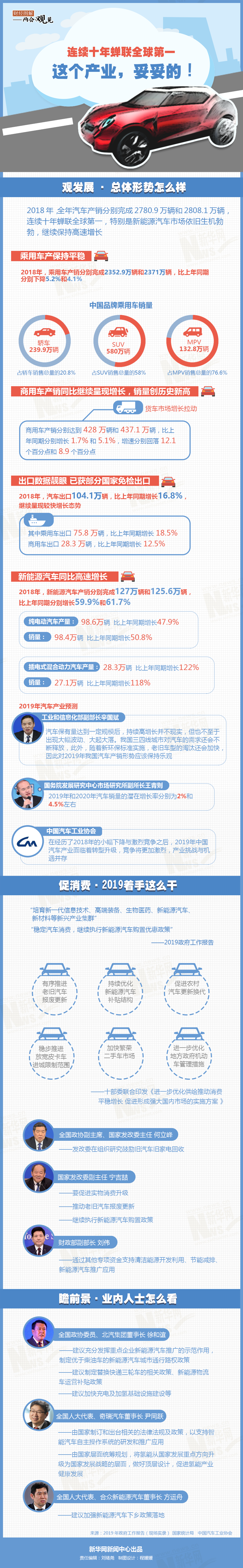 在2019年的政府工作報告中,作為國民經(jīng)濟支柱產(chǎn)業(yè)的汽車產(chǎn)業(yè)被多次提及,涵蓋到新能源汽車、制造業(yè)稅費、穩(wěn)定汽車消費等方面。