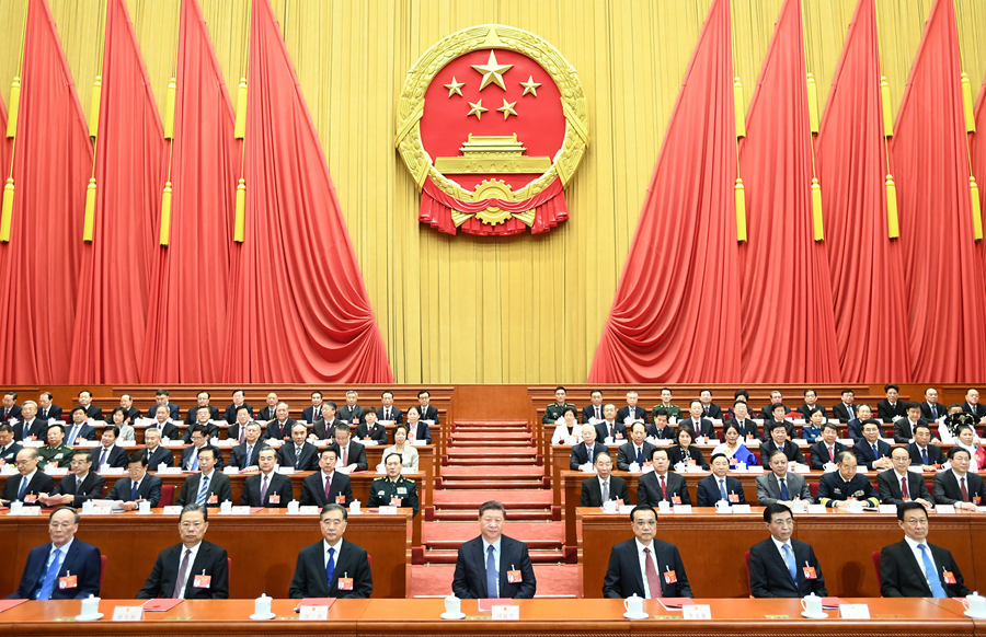 習近平、李克強、汪洋、王滬寧、趙樂際、韓正、王岐山和大會主席團成員在主席臺就座。