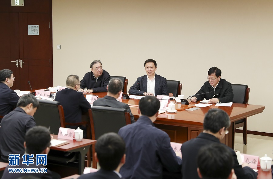 1月9日,中共中央政治局常委、國務院副總理韓正在國家醫(yī)療保障局召開座談會?!⌒氯A社記者 丁海濤 攝
