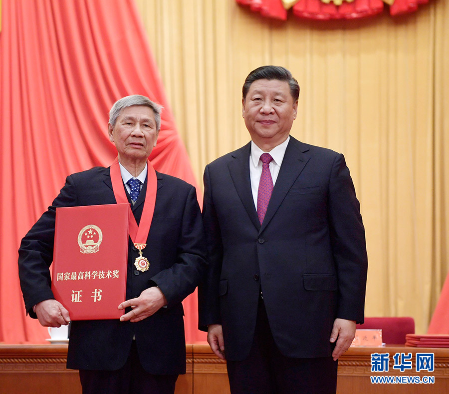 1月10日,2019年度國家科學(xué)技術(shù)獎勵大會在北京人民大會堂隆重舉行。中共中央總書記、國家主席、中央軍委主席習(xí)近平向獲得2019年度國家最高科學(xué)技術(shù)獎的原中國船舶重工集團(tuán)公司第七一九研究所黃旭華院士頒獎。 新華社記者 李學(xué)仁 攝