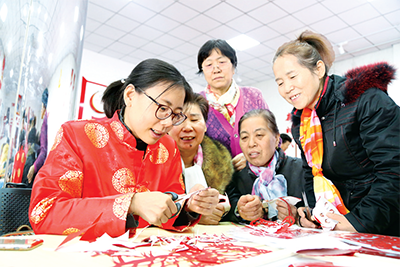 山東淄博市張店區(qū)開展“迎新春·情暖冬日”活動,組織機關干部教群眾剪窗花。