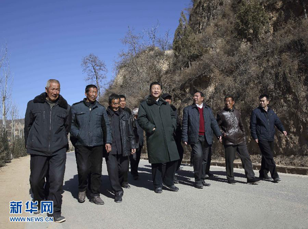 2015年2月中旬,習(xí)近平到陜西看望慰問群眾,特意找來當(dāng)年陜甘寧革命老區(qū)所屬范圍的市縣領(lǐng)導(dǎo)人,一起開了陜甘寧革命老區(qū)脫貧致富座談會,了解情況,明確思路,推進工作。