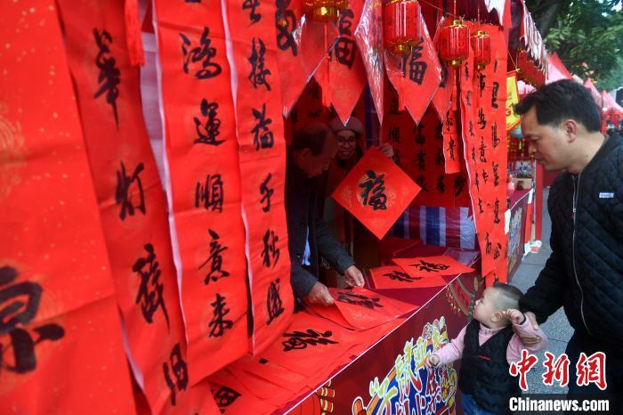 資料圖:圖為民眾挑選春聯(lián)。 呂明 攝