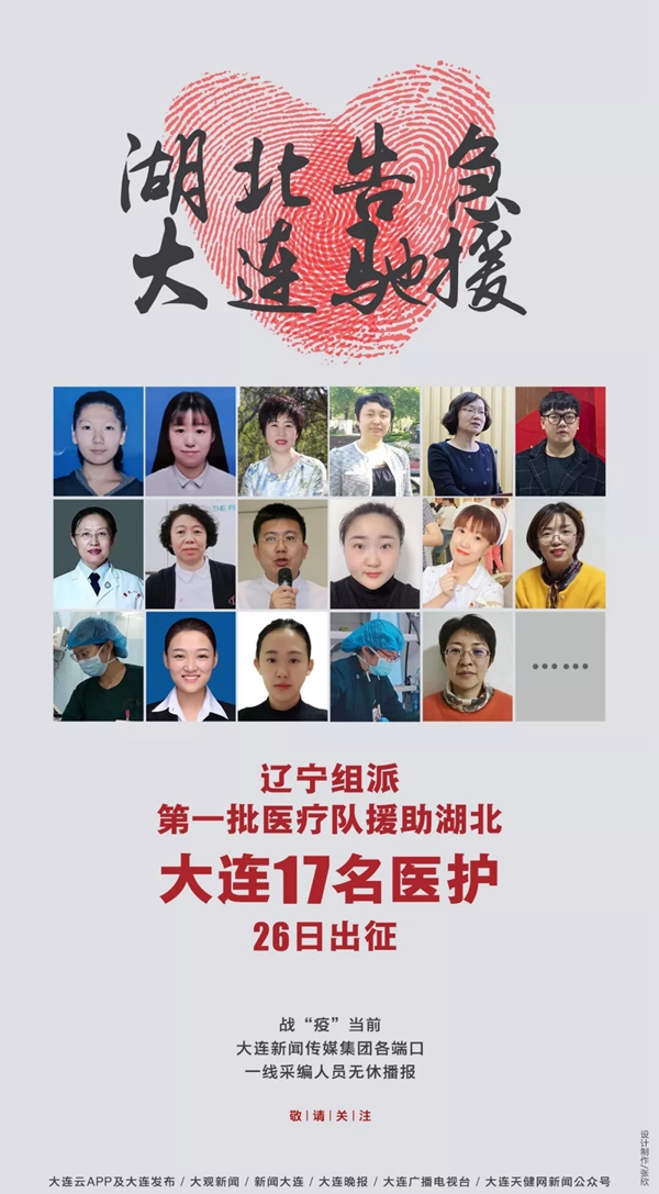記者從大連市衛(wèi)生健康委獲悉,我市確定了17名醫(yī)護(hù)人員參與到遼寧第一批援助湖北應(yīng)對(duì)新型冠狀病毒感染的肺炎疫情醫(yī)療隊(duì)中,今日早上將出征馳援。
