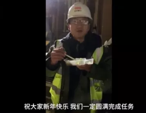 昨日除夕,上百臺機械在施工現場同時開挖,工人們連晚飯也只是站在馬路邊上草草解決,又繼續(xù)投入戰(zhàn)斗。