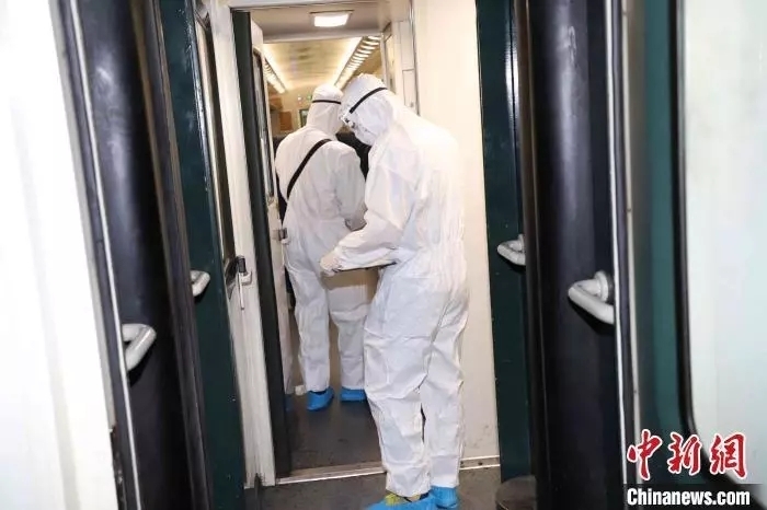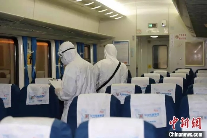 在車上,廣州鐵路疾控中心工作人員正全副武裝對(duì)列車進(jìn)行全面消毒。帶隊(duì)作業(yè)的廣州鐵路疾控中心主任楊裕楨介紹:“根據(jù)目前疫情的情況,我們的工作整體上包括消毒、檢疫、防護(hù)和保障有四大塊?!睋?jù)介紹,鐵路部門按照屬地政府的工作安排,采取預(yù)防性消毒、隨車消毒和終末消毒等方式,每日對(duì)候車室、旅客列車進(jìn)行消毒。加強(qiáng)車站和旅客列車空調(diào)通風(fēng)設(shè)施檢查、維修和消毒,做好候車室和旅客列車通風(fēng)換氣,保持室(車)內(nèi)空氣清新。