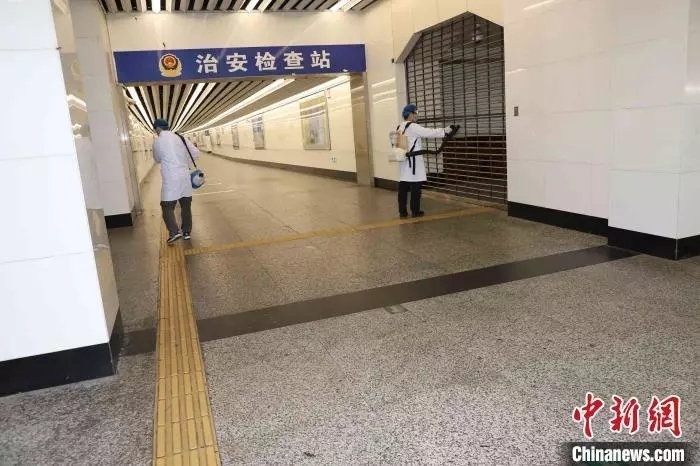 防疫人員正在對(duì)車站進(jìn)行消毒。戴昊君 攝