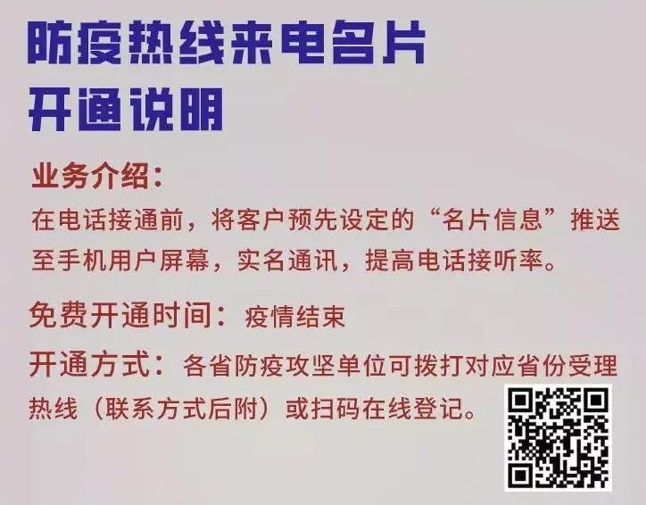 中國電信免費(fèi)為各地防疫熱線提供來電名片服務(wù),保證關(guān)鍵時期的電話第一時間快速接通。