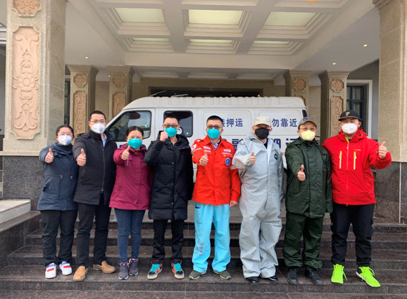 ??? 圖為第二批上海援鄂醫(yī)療隊(duì)隊(duì)長(zhǎng)、瑞金醫(yī)院副院長(zhǎng)陳爾真(右四)帶領(lǐng)隊(duì)員在武漢大學(xué)接收物資。左四為本文作者、第二批上海援鄂醫(yī)療隊(duì)隊(duì)員、上海第九人民醫(yī)院重癥監(jiān)護(hù)科副主任醫(yī)師應(yīng)佑國(guó)。新華網(wǎng)/發(fā) 第二批上海援鄂醫(yī)療隊(duì)/供圖