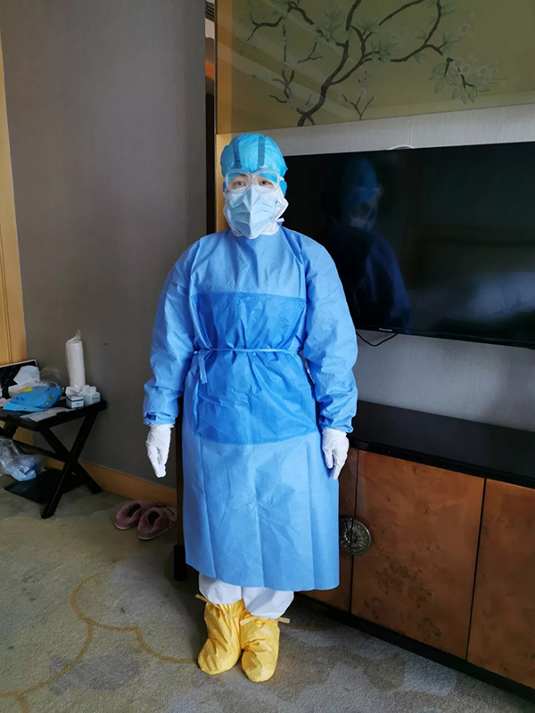 圖為在武漢培訓(xùn)時(shí)吳丹練習(xí)穿脫隔離衣。新華網(wǎng)發(fā)