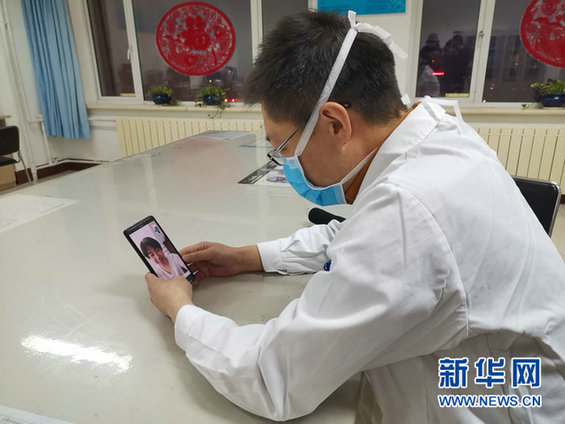 2月1日晚,王旭光和妻子李莉在視頻通話。(新華網(wǎng)曹楨攝)