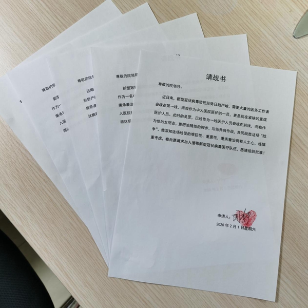 聞靜寫下“請戰(zhàn)書”。新華網(wǎng)發(fā)