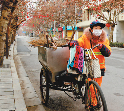 2月5日,湖北恩施市容環(huán)衛(wèi)管理局的環(huán)衛(wèi)工作者在清掃城市道路,維護環(huán)境衛(wèi)生。譚 華攝(人民視覺)