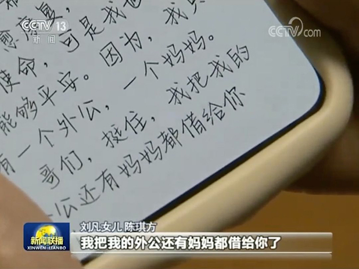 劉凡女兒 陳琪方:當(dāng)我得知我年邁的外公也在前線時(shí),眼眶早已通紅。還有我的媽媽?zhuān)麄兌颊f(shuō)自己是黨員會(huì)沖上前線。