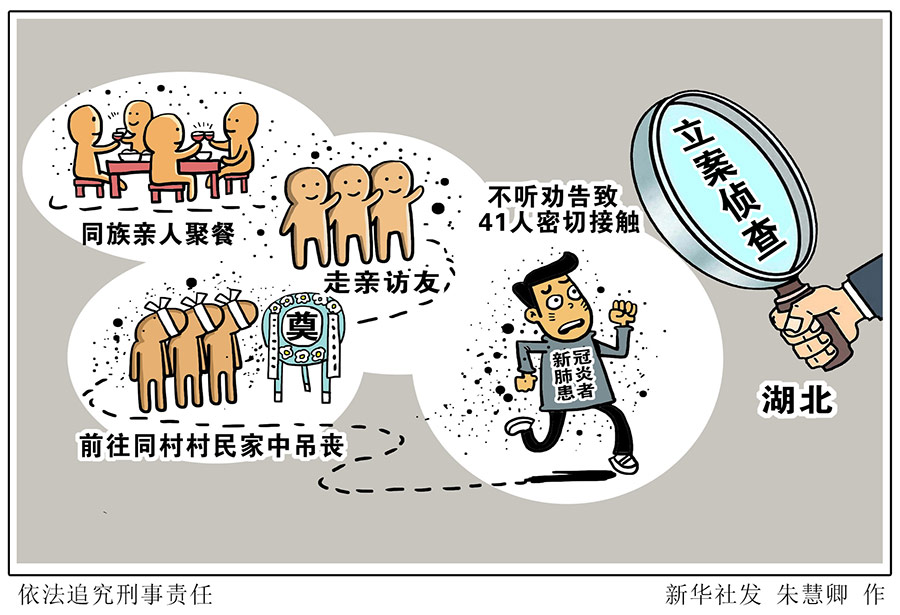 新華社武漢2月7日電(記者譚元斌)記者7日從湖北宣恩縣新型冠狀病毒感染的肺炎疫情防控指揮部獲悉,宣恩縣一名新冠肺炎患者不聽勸告致41人密切接觸被立案偵查。
