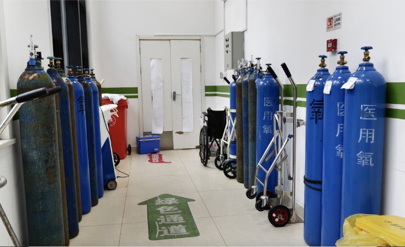 “笑笑,今天的氧氣罐多少個(gè)?”“32個(gè)?!彼涡π土硪幻o(hù)士在走廊盡頭清點(diǎn)氧氣罐后,發(fā)現(xiàn)已經(jīng)空了6瓶。