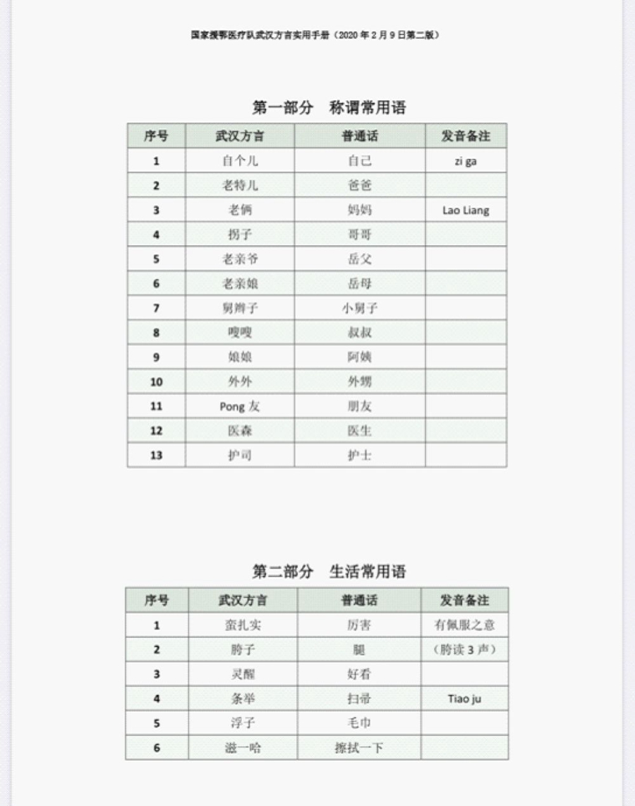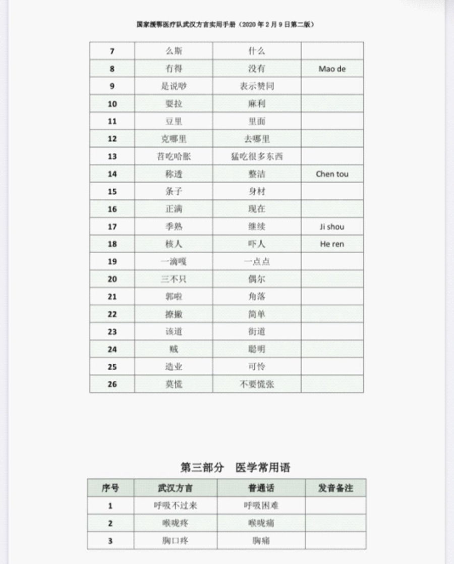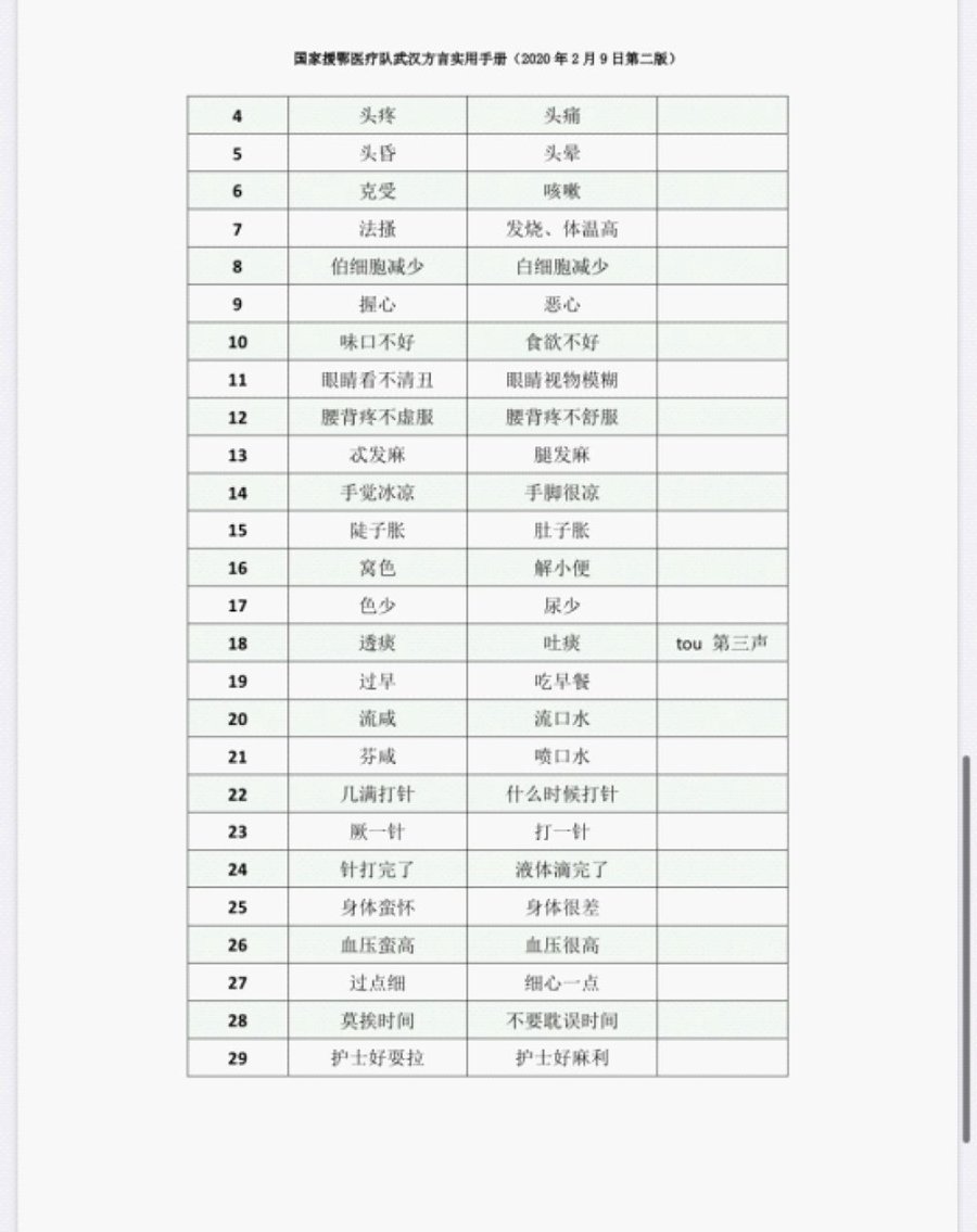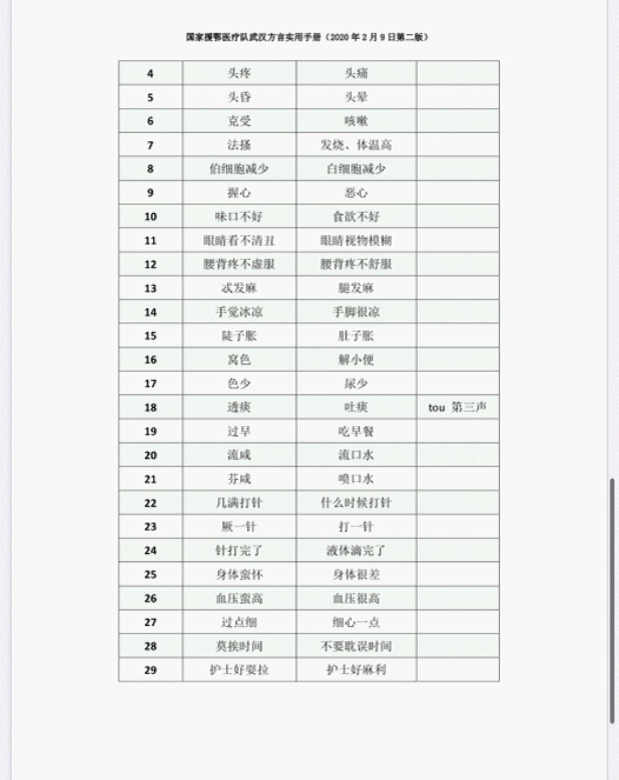 《國家援鄂醫(yī)療隊武漢方言實用手冊》