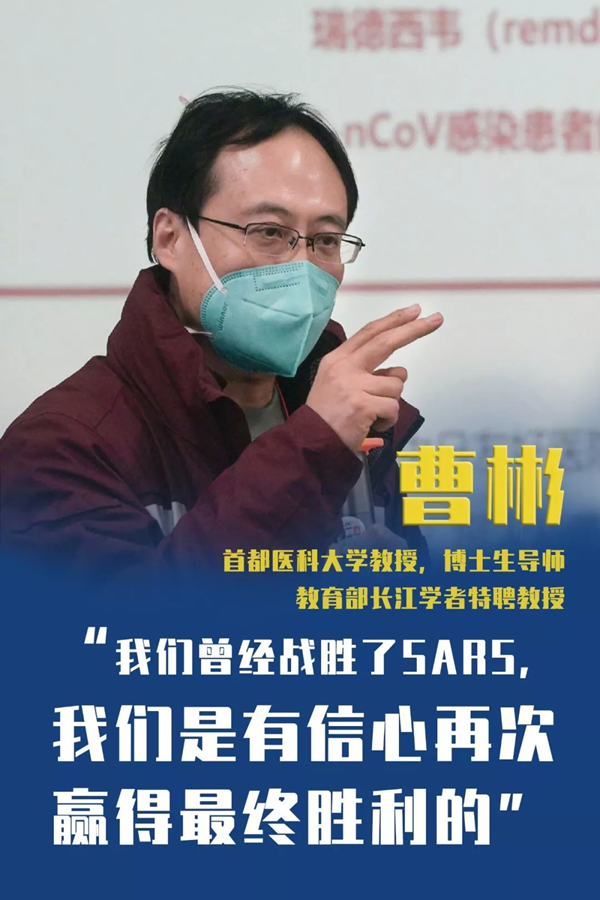 首都醫(yī)科大學教授、博士生導師,教育部長江學者特聘教授,中日友好醫(yī)院副院長曹彬在疫情暴發(fā)前期就作為衛(wèi)健委特派專家多次奔赴武漢一線。當他得知自己所屬的中日友好醫(yī)院將召集醫(yī)療隊共赴戰(zhàn)場時,他在呼吸中心的微信群里發(fā)了這樣的信息:“我在武漢等你”。受他感召,中日友好醫(yī)院呼吸中心的同事們紛紛踴躍報名!