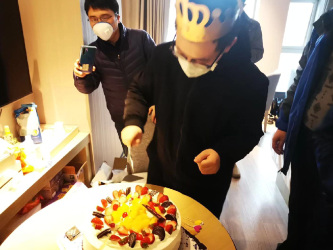 吳小龍還分享了一個(gè)暖心的故事——2月5日,醫(yī)療隊(duì)們準(zhǔn)備了一場(chǎng)特別的生日會(huì)。