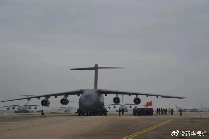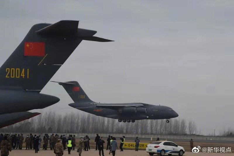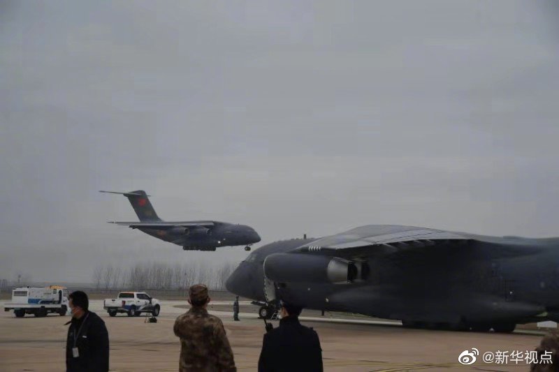 軍隊增派2600名醫(yī)護人員支援武漢抗擊新冠肺炎疫情。國產大型運輸機運-20“胖妞”首次參加非戰(zhàn)爭軍事行動。13日,空軍出動3型11架運輸機多地同步向武漢空運醫(yī)療隊員抵達武漢天河機場。(新華社記者黎云攝) ????