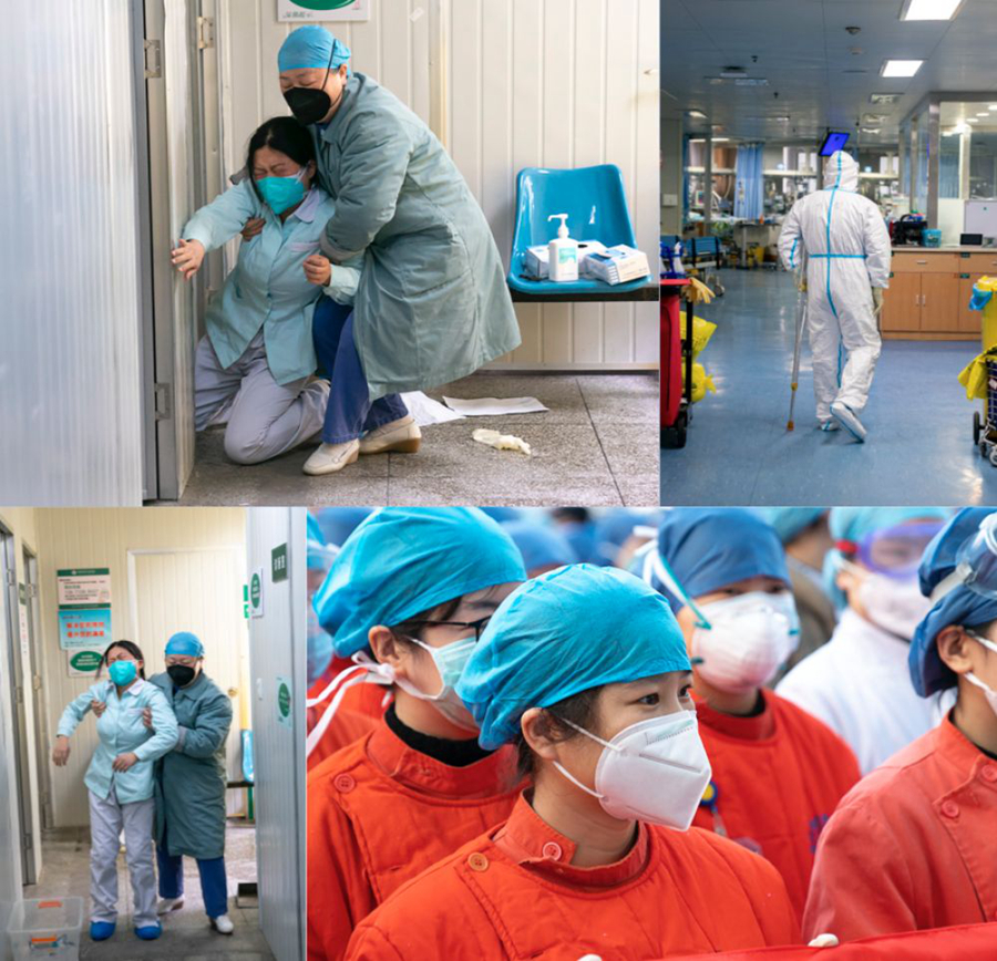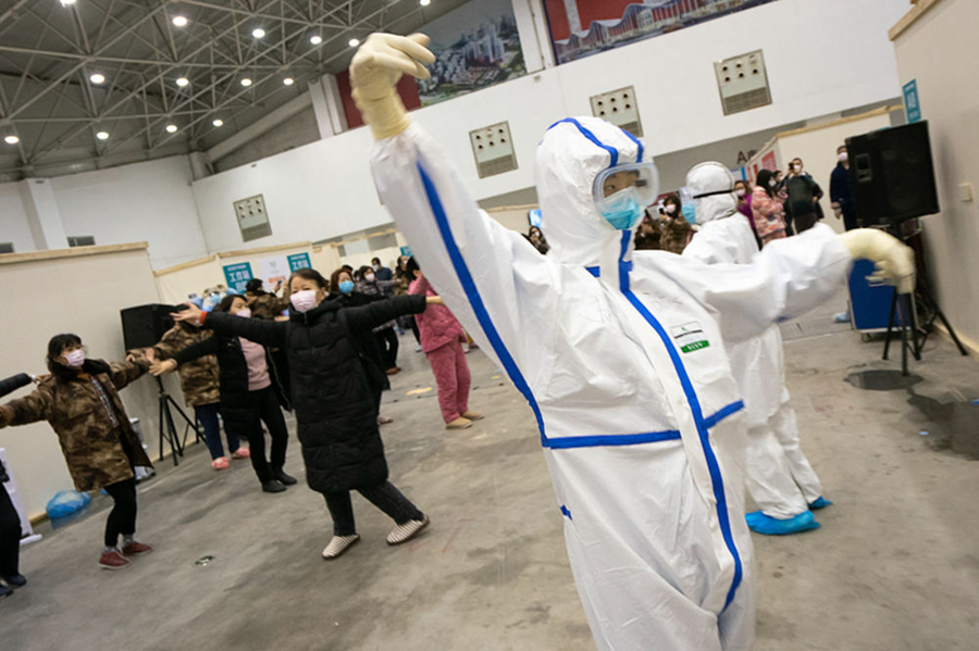 在武漢客廳方艙醫(yī)院,就算隔著厚厚霧氣的防護(hù)鏡,我依然被眼前景象深深打動(dòng):病人相互加油鼓勁,打拳的、拼魔方的、跳廣場(chǎng)舞的…他們有人呼吸艱難,喘著粗氣,卻也努力伸展,露出生命本來的頑強(qiáng)模樣。