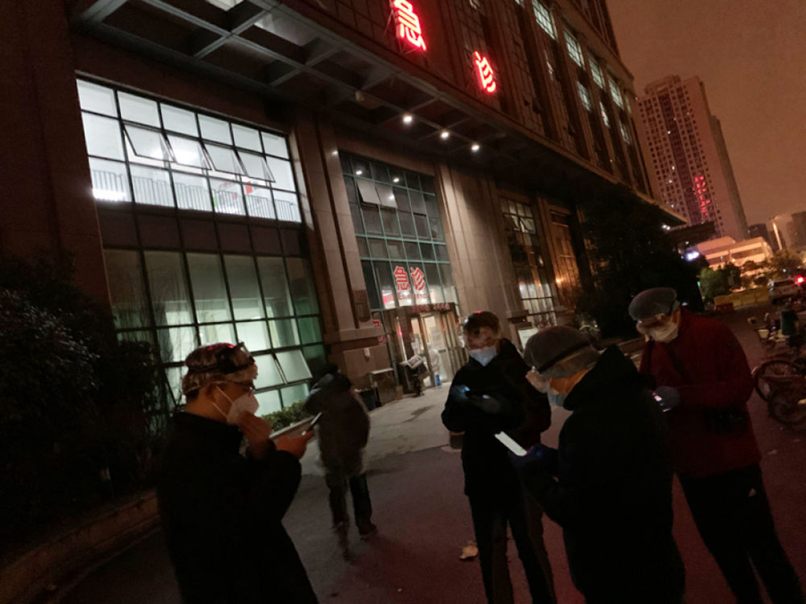 此時(shí)此地,也有太多眼淚和悲痛,還來不及釋放,就只能化作續(xù)步前行的力量。2月6日晚,李文亮醫(yī)生病危,全國網(wǎng)友悲慟,希望出現(xiàn)轉(zhuǎn)機(jī)。午夜時(shí)分我趕到他所在的醫(yī)院樓下,寒風(fēng)中,和一群同行站在門口,想不服輸?shù)氐纫粋€(gè)奇跡。直到凌晨3點(diǎn),沒有奇跡發(fā)生。因?yàn)樽叩么颐Γ鄙俜雷o(hù)用品,我放棄了貿(mào)然進(jìn)入隔離區(qū)拍攝的想法。在空無一人的醫(yī)院門口,只能深鞠一躬后離去。