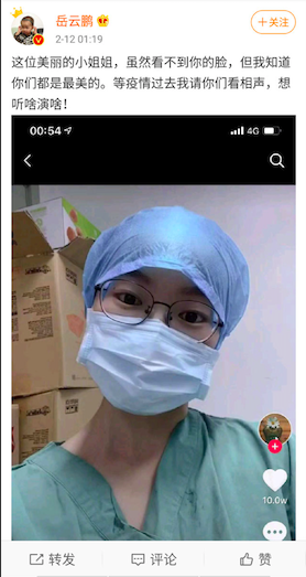 這兩天,相聲演員岳云鵬發(fā)的微博火了。原來(lái)是前線的一位護(hù)士在社交媒體平臺(tái)發(fā)文稱,等疫情結(jié)束想去德云社看演出。岳云鵬看到后在微博暖心回復(fù)稱:這位美麗的小姐姐,雖然看不到你的臉,但我知道你們都是最美的。等疫情過(guò)去我請(qǐng)你們看相聲,想聽(tīng)啥演啥!