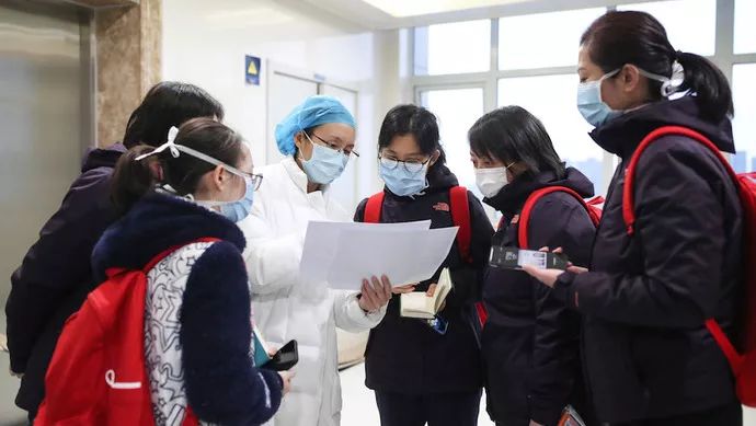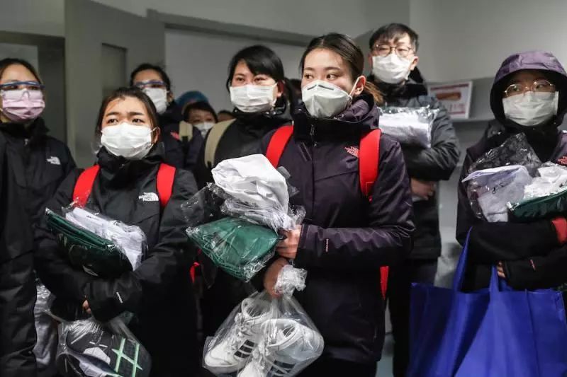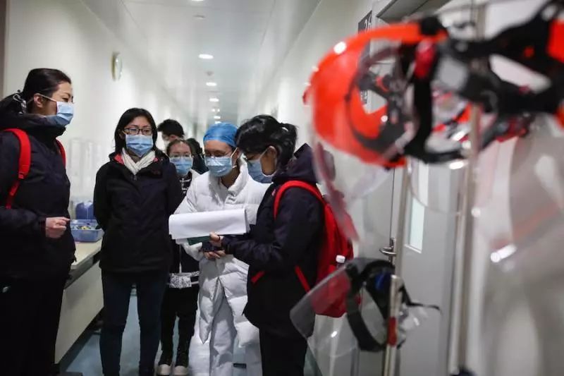 通向過(guò)道的一扇門打開(kāi)了,走出一個(gè)年輕的女護(hù)士,鼻梁上的紅色壓痕還在,顯然是剛剛卸下口罩從隔離病房出來(lái)。她一抬頭,看到塞滿過(guò)道的人,有些手足無(wú)措,手上拎著的護(hù)目鏡也忘了放進(jìn)消毒桶里。她很久沒(méi)有在病區(qū)看到這么多健康的人了。今天,援兵終于來(lái)了。
