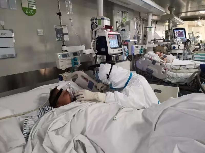 本來想讓她適應(yīng)之后,安心休息,但隨著時間延長,她雖然心理上接受了,可是氣道壓過大,呼吸機還是漏氣,還是需要有人陪著,我只好幫她扶著無創(chuàng)面罩,保持不漏氣的力度。阿姨的呼吸慢慢平穩(wěn)了,在我趴著的時候,她用武漢話對我說,謝謝你,丫頭,我舒服多了,好人有好報……那一刻,我覺得用自己學到的技能幫到了患者,挺溫暖的。