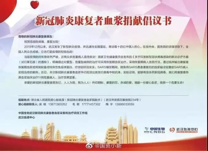 昨天(14日),也就是《新冠肺炎康復(fù)者血漿捐獻(xiàn)倡議書》發(fā)出的第二天,兩名武漢的康復(fù)者,分別前往武漢大學(xué)人民醫(yī)院及武漢金銀潭醫(yī)院進(jìn)行血漿捐獻(xiàn)。湖北以外,包括江蘇、上海等地也有康復(fù)者捐獻(xiàn)血漿,用于救治重癥患者。