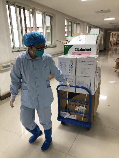 一個12小時的班,邱李夏來回奔波近50公里,運回26箱手套、2箱成人紙尿褲、4箱手消毒液、2箱滅菌蒸餾水……新華網(wǎng)發(fā)
